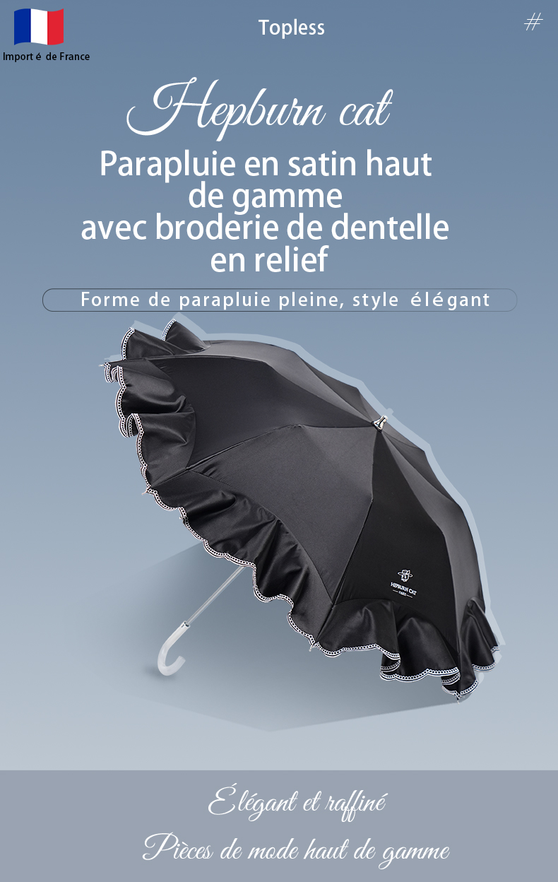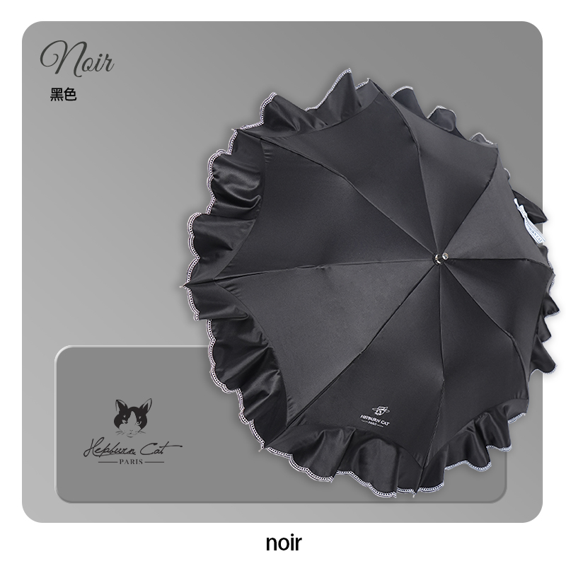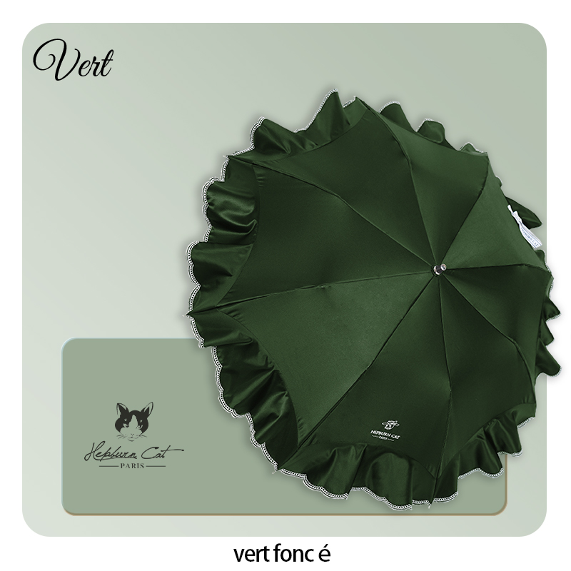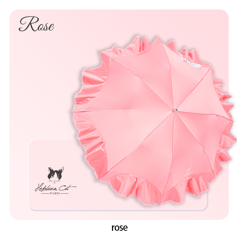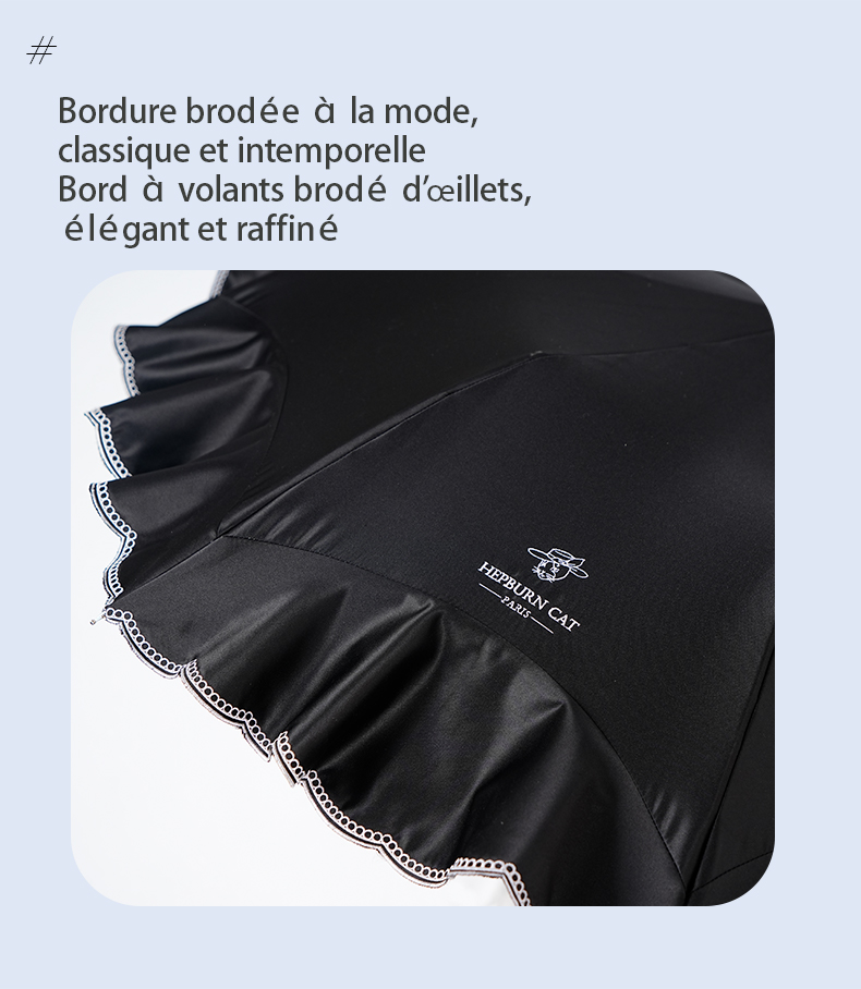 Hepburncat-Parapluie en satin luxe à broderie et volants 3D