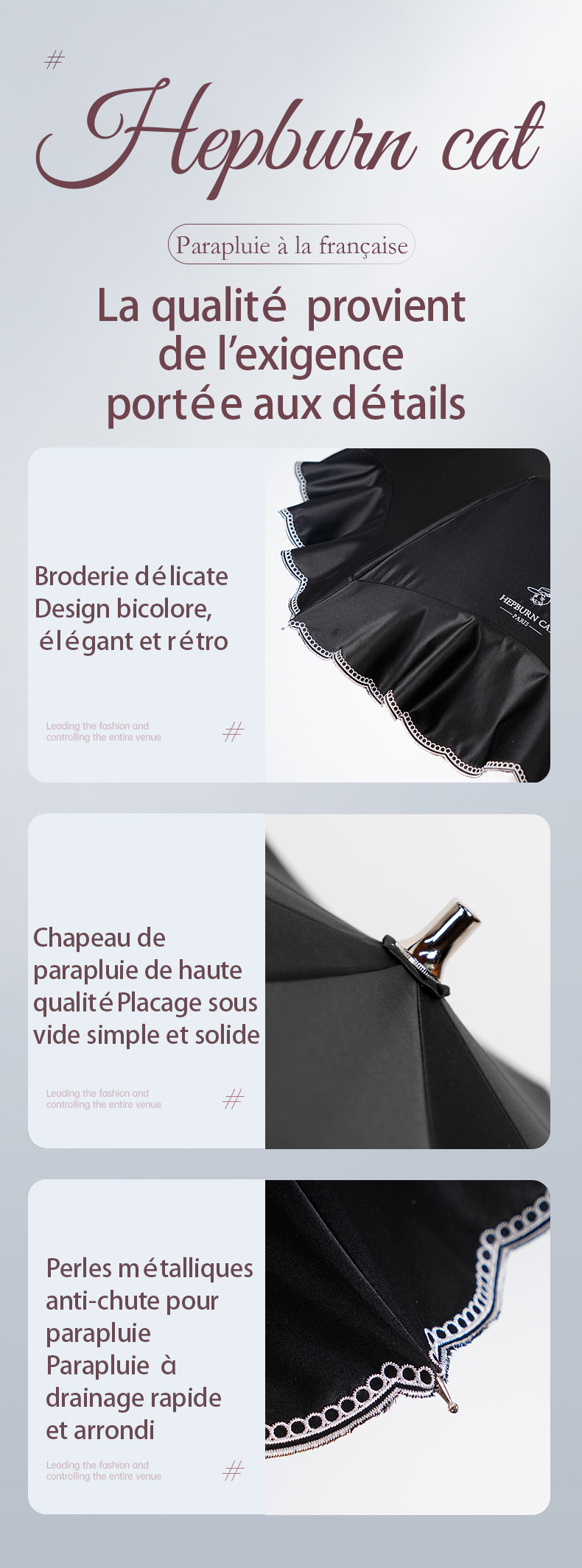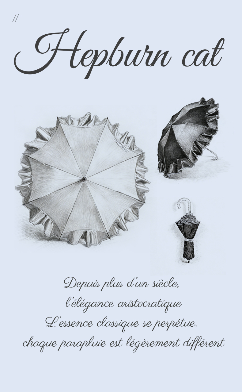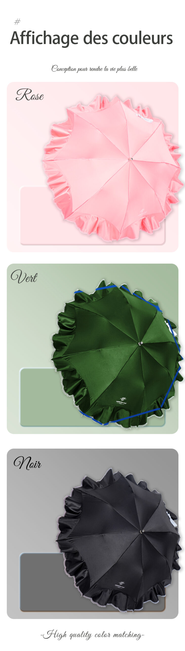 Hepburncat-Parapluie en satin luxe à broderie et volants 3D