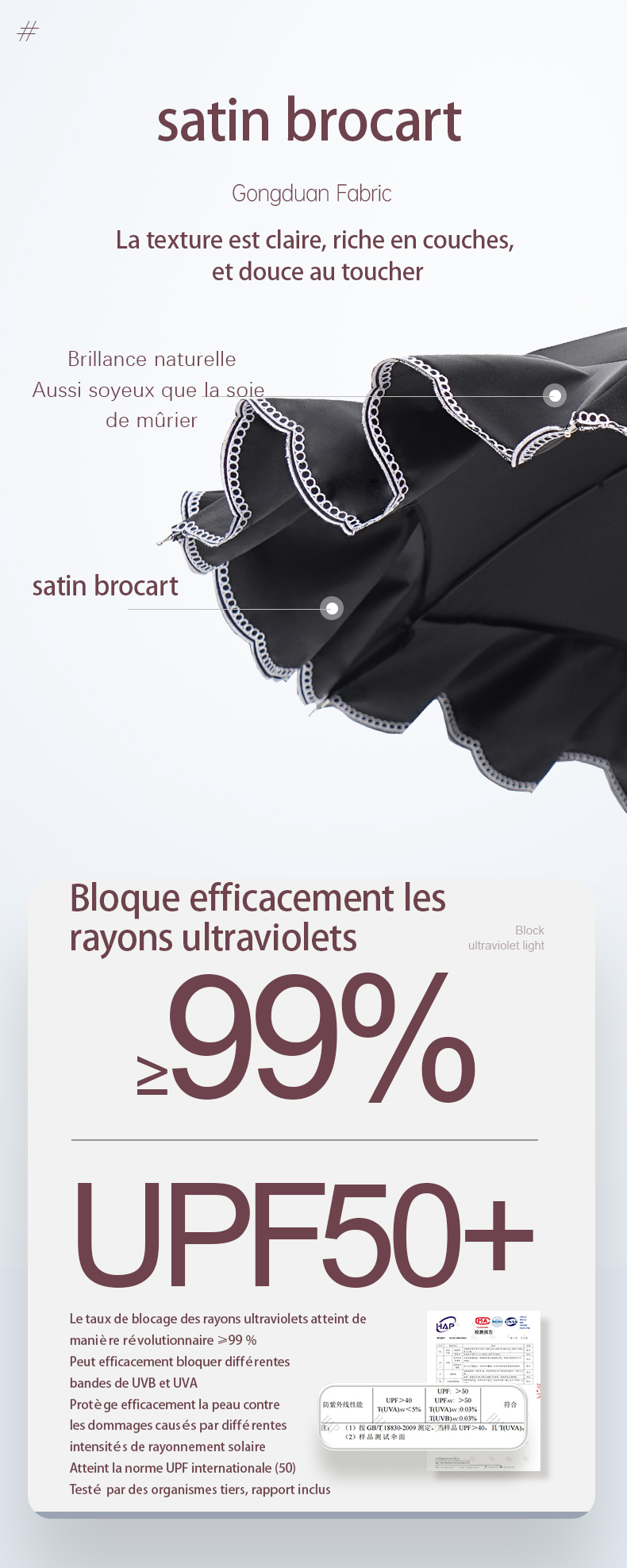 - Indice UV : UPF50+
